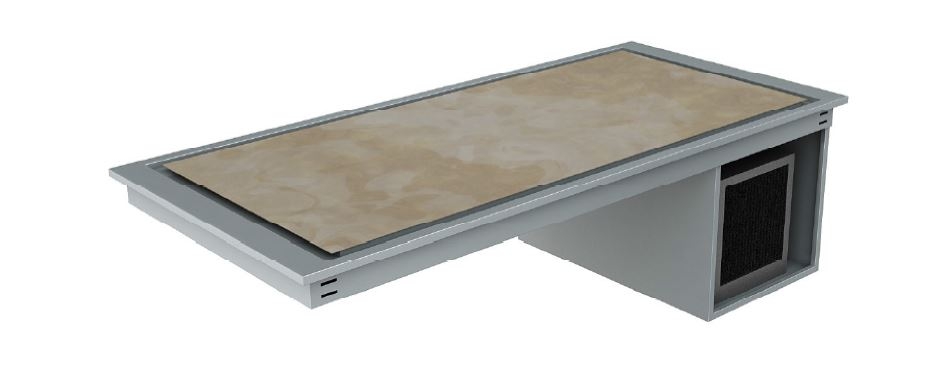 Plan réfrigéré encastrable, réalisé en granit et acier inox AISI 304, avec groupe logé ou prédisposé pour groupe à distance. L’idéal pour présenter les aliments sur assiettes ou plateaux. Isolation par mousse de polyuréthane injectée. Rigole périphérique pour le