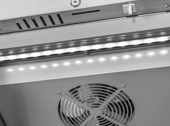 Fabriqué en acier inoxydable SS201, il est robuste, hygiénique et résistant à un usage intensif. Sa capacité utile de 508 litres est répartie sur 4 grilles renforcées (dont 3 supérieures et 1 inférieure), compatibles bacs GN1/1 et GN2/1. La porte réversible avec serrure intégrée assure sécurité et modularité, tandis que l’éclairage LED intérieur permet une bonne visibilité en toute circonstance.