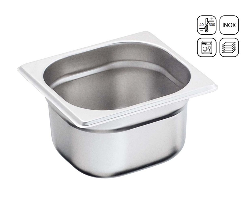 Bac GN 1/6 Eco en acier inox 176x162 mm