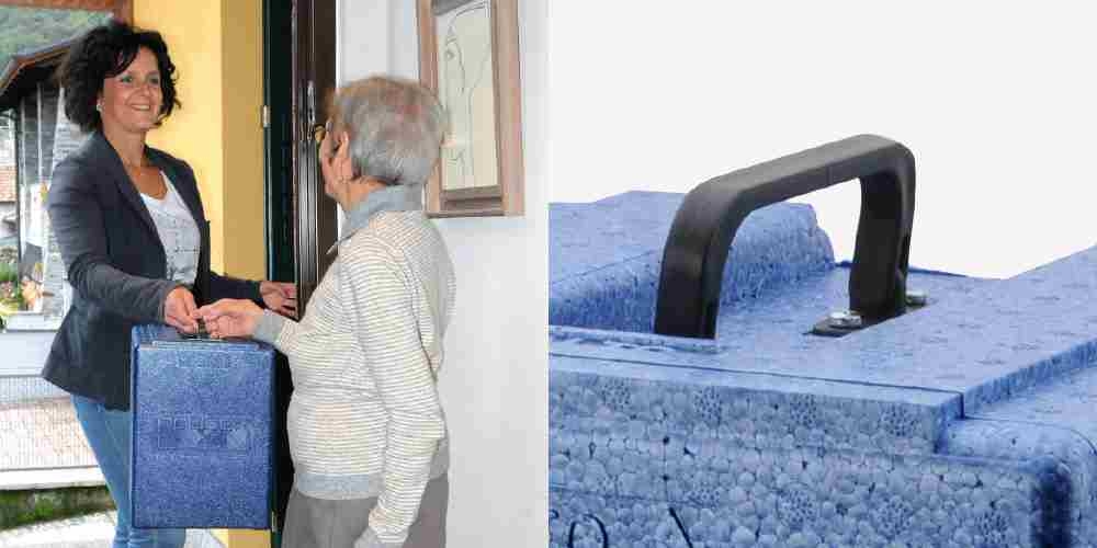 Le conteneur monobloc avec ouverture frontale et poignées pour la distribution d’aliments dans le secteur hospitalier, collectivités et cantines Mono.