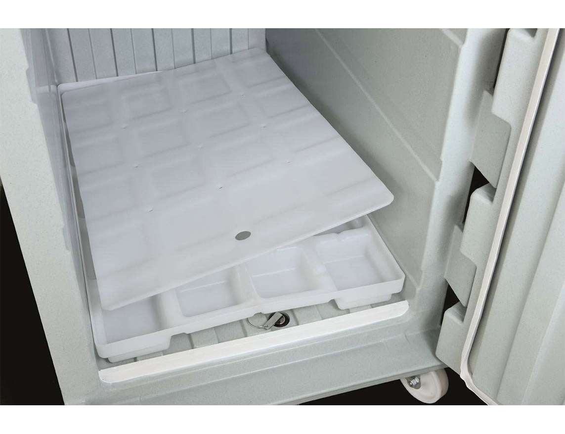 - Accélère les opérations de distribution dans les points de vente: peut être chargé dans la cellule frigorifique du centre au magasin en gros et déchargé du comptoir frigo du supermarché de destination.