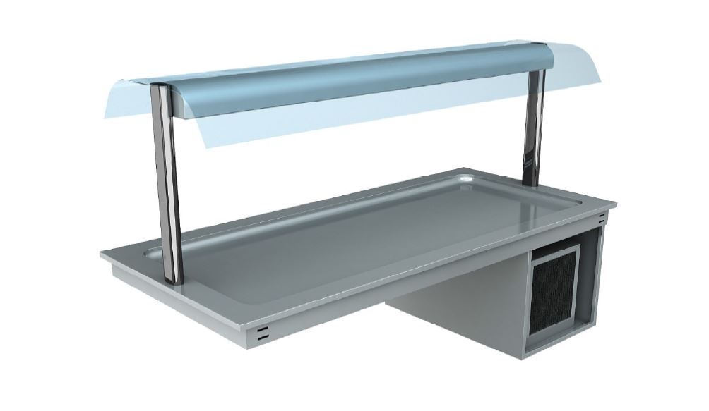 Plan réfrigéré encastrable, avec superstructure. Groupe logé ou prédisposé pour groupe à distance. L’idéal pour présenter les