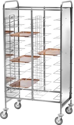 Chariots à plateaux universels également disponibles avec panneaux latéraux en perfex blanc (CA 1465P) ou en acier inoxydable (CA 1465PI).