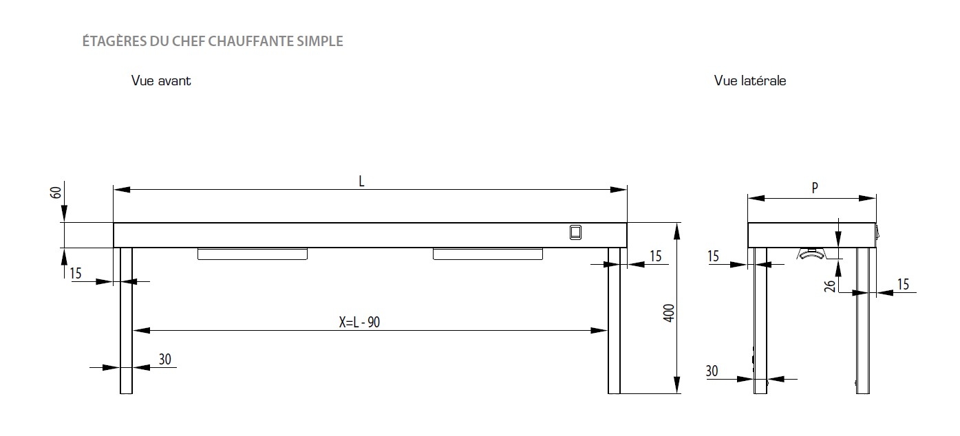 - émetteurs infrarouge en céramique d'une puissance de 400 W