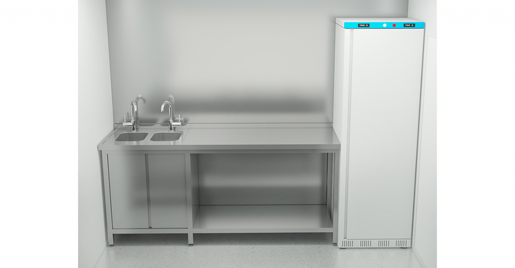 | Une table en acier inoxydable avec deux lavabos | 1280x600x850h | - | - | 1 |