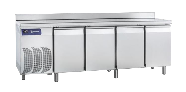 Arrière de bar négatif en inox avec plan de travail et dosseret 580 L