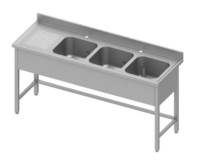 - les tables d'une profondeur de 700 mm et 800 mm ont une cuve mesurant 500x500x250 mm (à l'exception des tables longues d'une longueur de 1500, 1600 et 1700 qui ont une cuve de 400x500x250 mm)