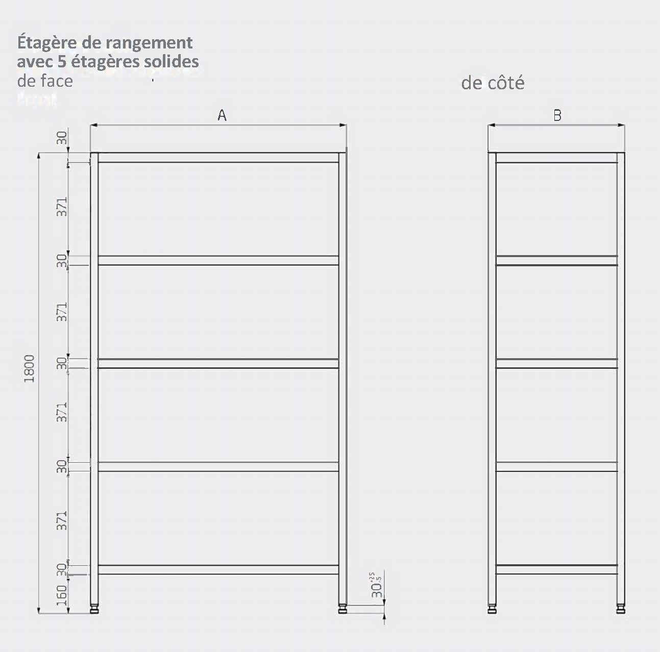 Rack de stockage avec 5 étagères réglables perforées