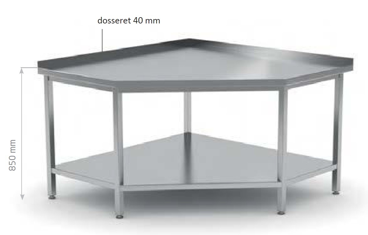 Table de travail d'angle avec dosseret et étagère en inox POL-105