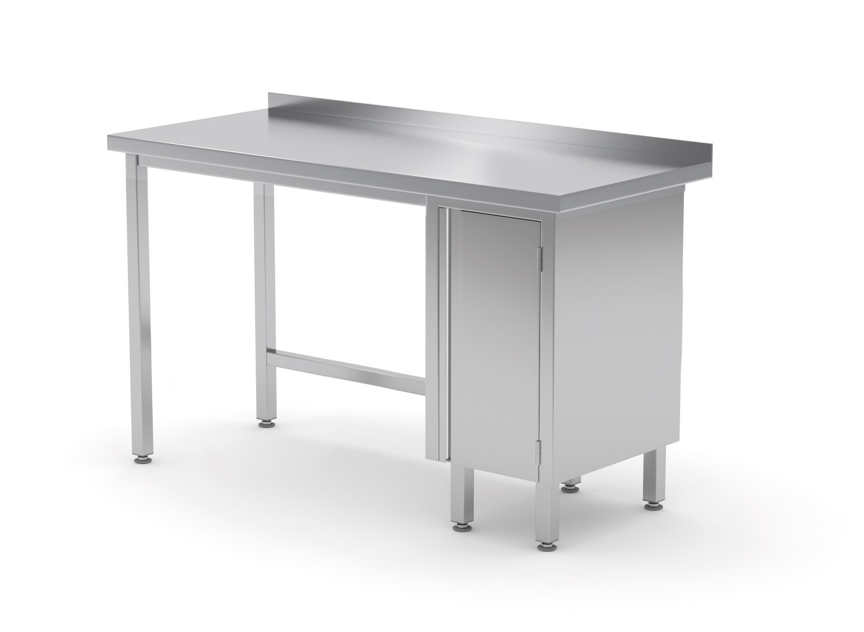 Table de travail avec dosseret, armoire avec porte battante en inox POL-124