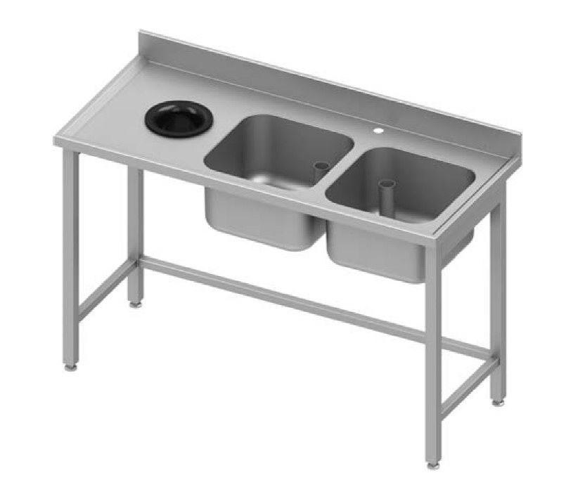- les tables d'une profondeur de 700 mm et 800 mm ont une cuve mesurant 500x500x250 mm (à l'exception des tables d'une longueur de 1400 et 1500 qui ont une cuve de 400x500x250 mm)