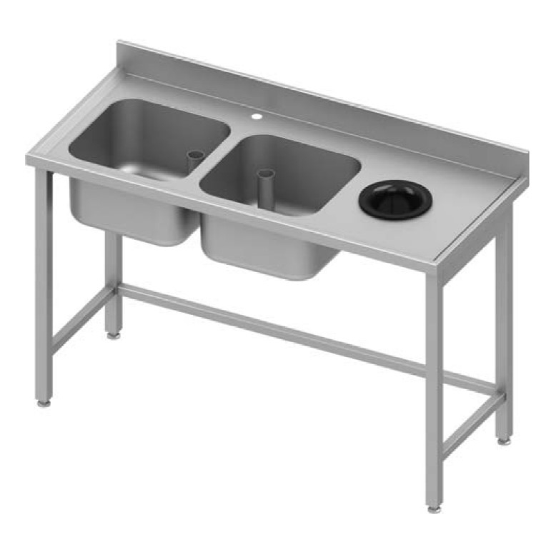 Table adossée avec double cuves à gauche et trou vide-ordures