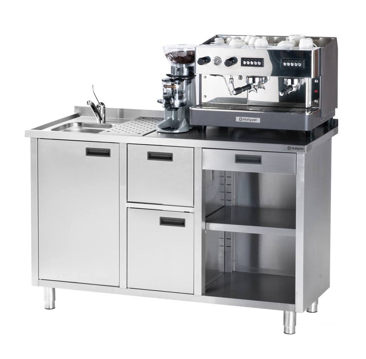 La table pour la cafetière avec égouttoir et évier 486710 est un meuble solide qui sera utilisé dans les hôtels, les magasins d'alimentation, les cafés, etc.