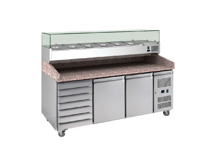 Meuble préparation Pizza Granit 2 Portes et 7 tiroirs