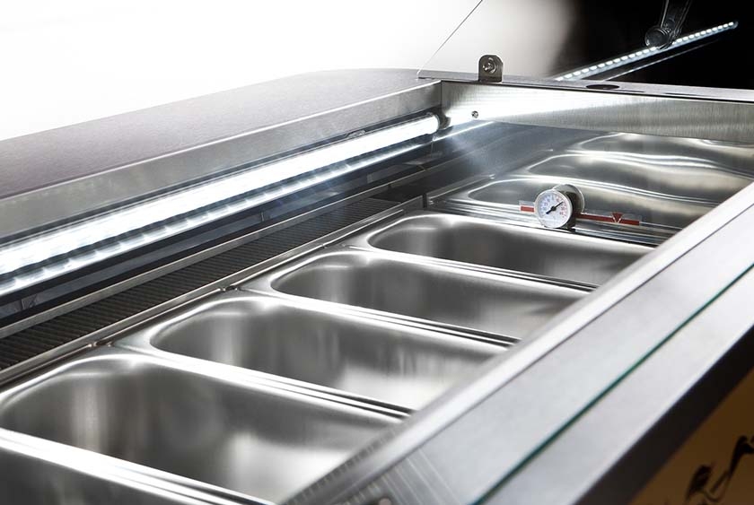 ventilée, vasque intérieure et plat de service en acier inox. Le petit triporteur est la solution idéale pour des installations free-standing et des