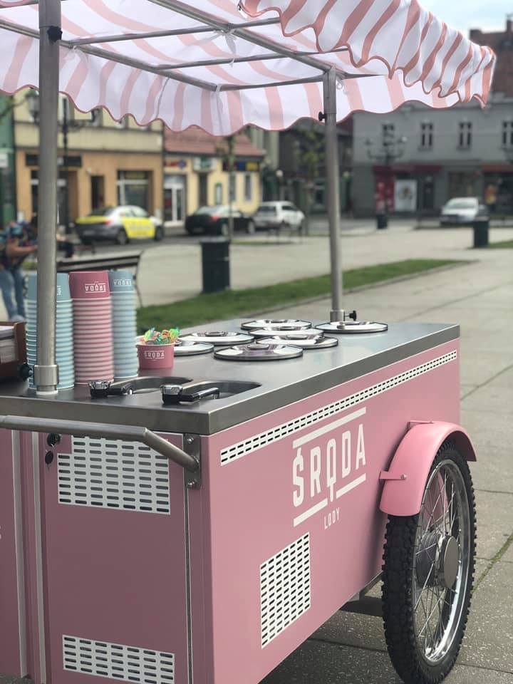 Notre vélo à crème glacée peut être équipé de 7 bacs de 7 litres chacun, vous pouvez donc vendre environ 420 portions de deux boules de glace chacune à partir d'un chargement. Un ventilateur intégré et une capacité de refroidissement accrue garantissent une température constante. Le vélo à glace est équipé d'un évier dans lequel vous pouvez vous laver les mains ainsi que des cuillères.