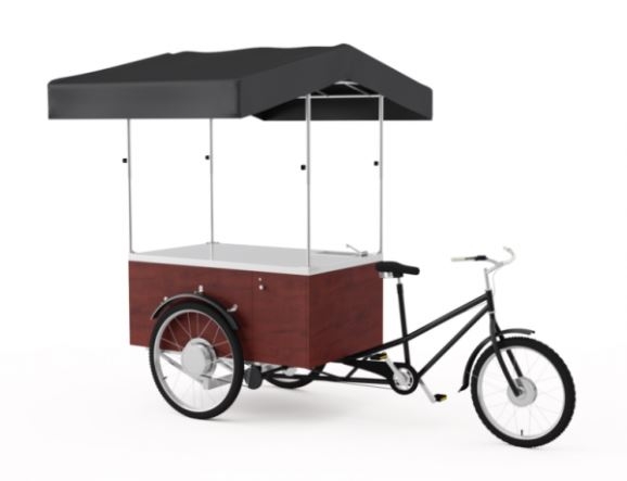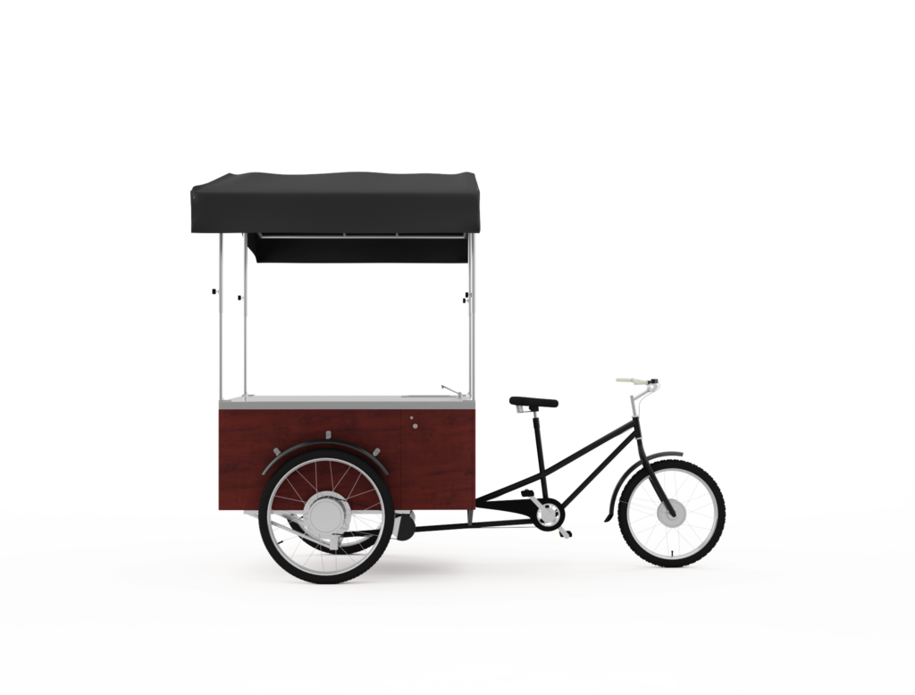 Triporteur Foodtruck avec coffre à l'arrière finition bois