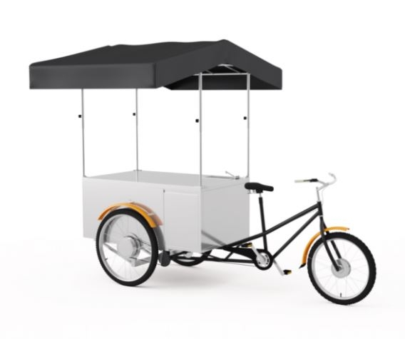 Triporteur Foodtruck avec coffre à l'arrière finition inox