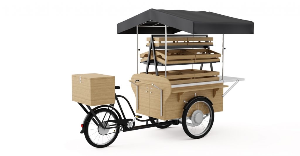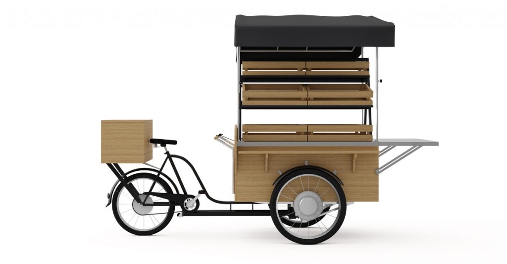 Le marché aux vélos est une nouveauté absolue sur le marché. Jamais auparavant un appareil mobile ne vous avait permis de vendre une variété de produits à partir d’un espace aussi restreint. Il est idéal pour la vente de légumes, de fruits, de fleurs, de souvenirs touristiques et même de parfums ou de confiseries dans les zones franches. Construction parfaitement conçue qui vous permet d’installer 10 boîtes de dimensions 600x350x150 h d’une manière optimale pour exposer les marchandises en leur intérieur. Dans le coffre du vélo et sur le porte-bagages, nous pouvons facilement ranger des objets supplémentaires.