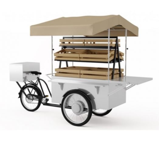 Le marché aux vélos est une nouveauté absolue sur le marché. Jamais auparavant un appareil mobile ne vous avait permis de vendre une variété de produits à partir d’un espace aussi restreint. Il est idéal pour la vente de légumes, de fruits, de fleurs, de souvenirs touristiques et même de parfums ou de confiseries dans les zones franches. Construction parfaitement conçue qui vous permet d’installer 10 boîtes de dimensions 600x350x150 h d’une manière optimale pour exposer les marchandises en leur intérieur. Dans le coffre du vélo et sur le porte-bagages, nous pouvons facilement ranger des objets supplémentaires.