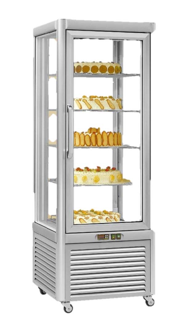 Vitrine de présentation et de vente de produits réfrigérés en 4 faces vitrées.