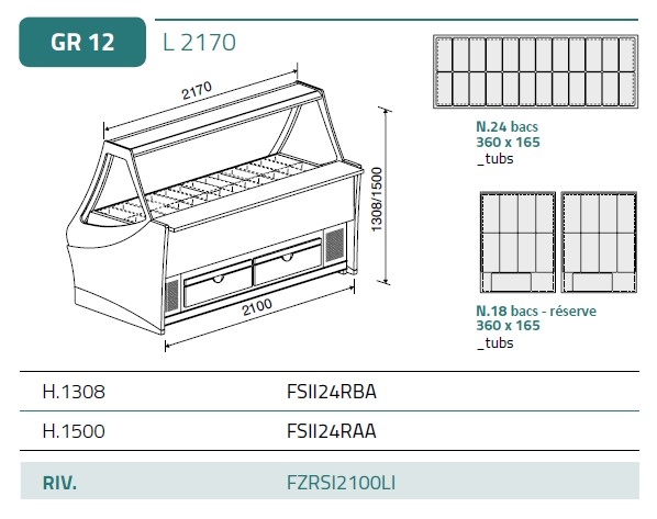 * : Les modèles GR9 et GR12 comportent une cellule de stockage. Bacs à crème glacée dans la cellule de stockage: H. max 150 mm