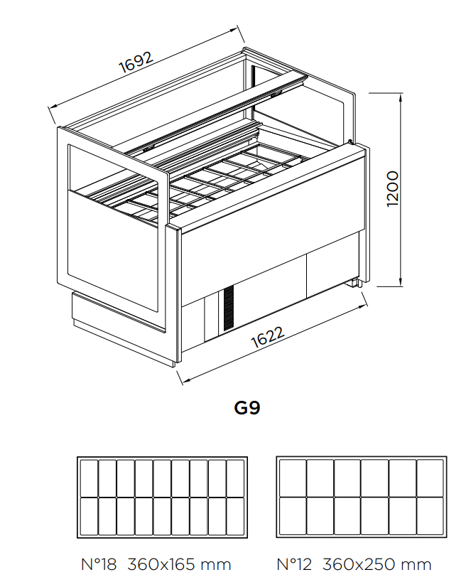 DIMENSIONS KATE G9 : 1692 x 1074 x 1200 mm - 18 bacs de 5 litres non fournis