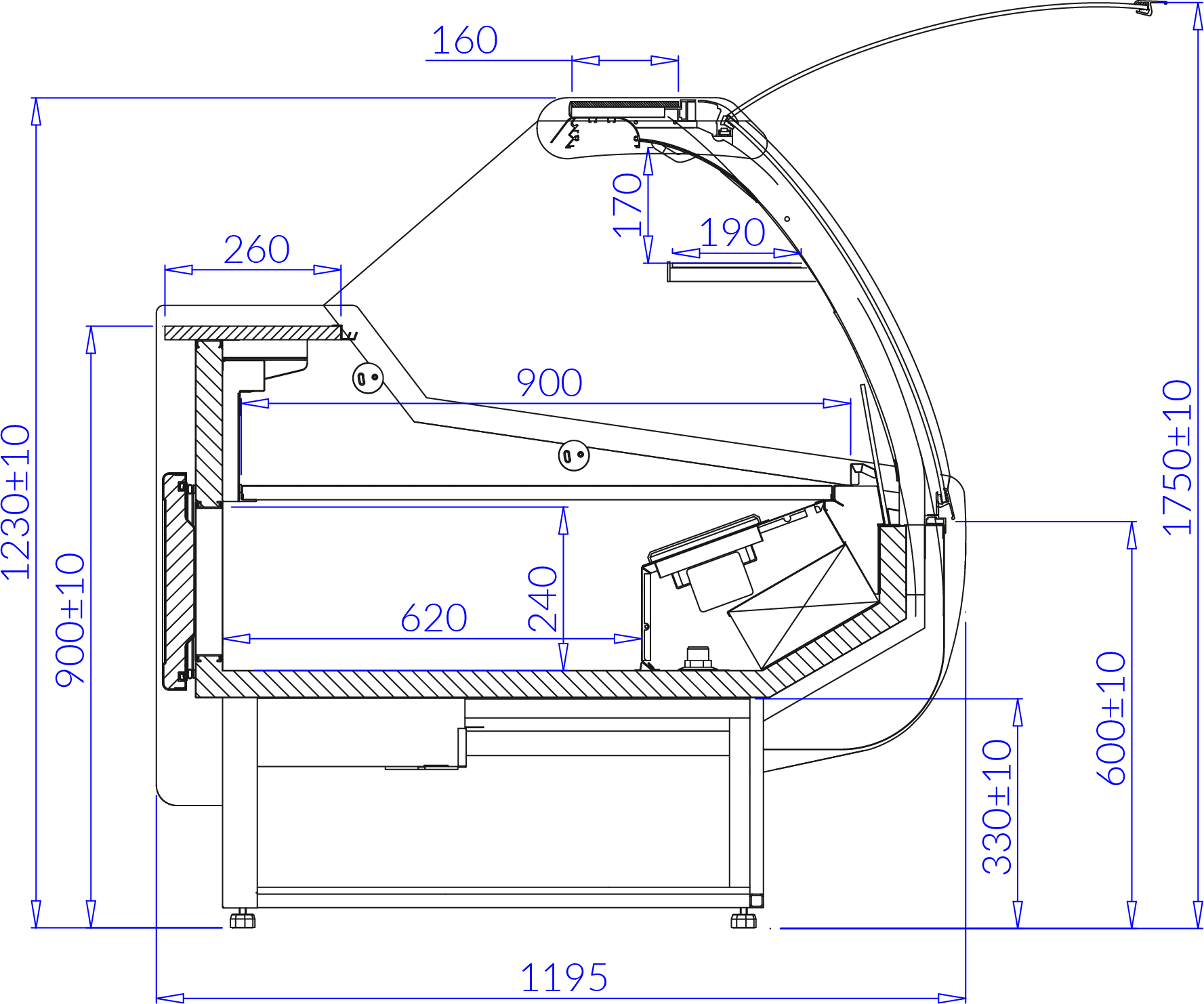 | Surface réfrigérée d'étagères [m2] | 0,86 | 1,16 | 1,43 | 1,73 | 2,21 | 3,38 |