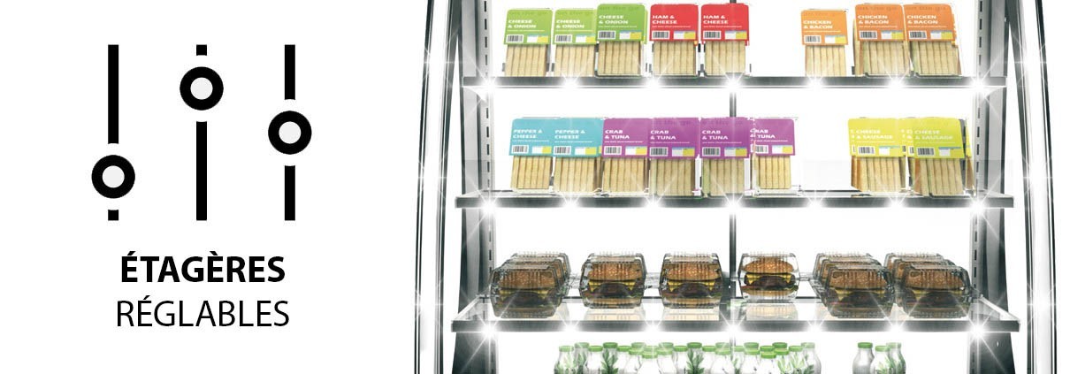 Visibilité totale : La zone d'exposition est maximisée en éliminant le moteur de l'espace visuel, et en maximisant la zone la plus précieuse des restaurateurs pour montrer leurs produits.