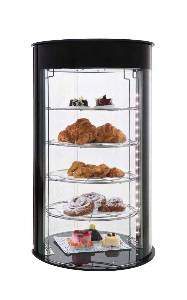 L'affichage vertical et circulaire révolutionnaire et sophistiqué de conception qui offre une vue de 360º du produit, dans la version neutre, parfaite pour l'exposition de n'importe quelle nourriture.