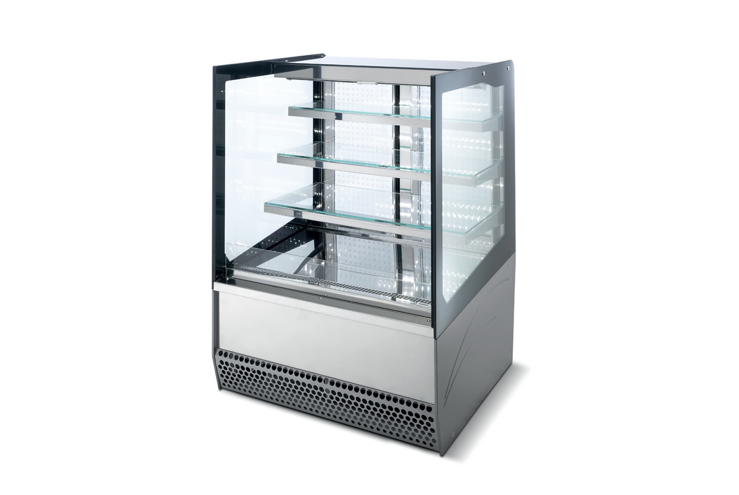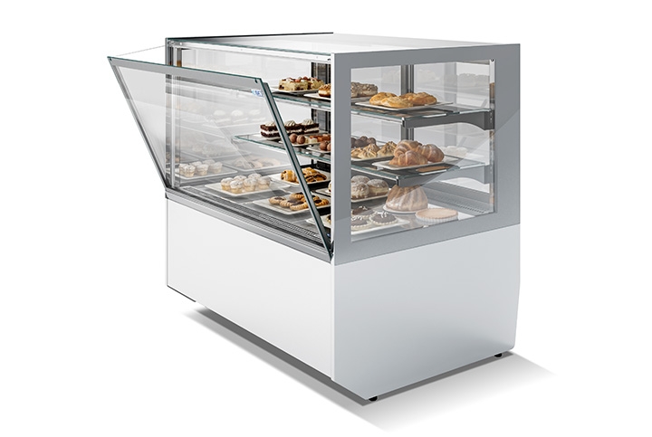 Vitrine avec réfrigération ventilée et dégivrage automatique par arrêt du compresseur et température positive. Idéal pour les produits frais, la pâtisserie et les boissons.