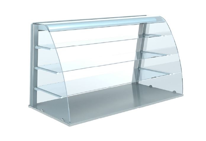 Vitrine neutre à clapets. L’idéal pour pains, couverts, plateaux et verres. Ouverte côté service. Clapets côté client. Verres latéraux et